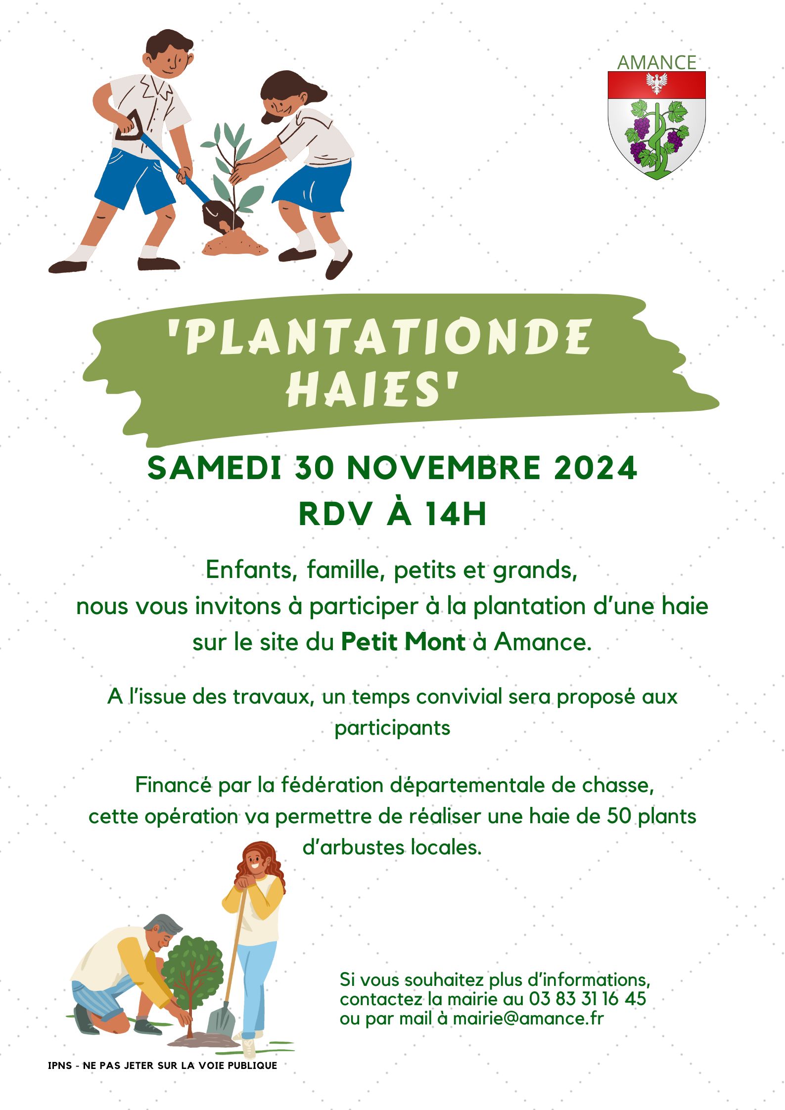 Vous êtes invités à participer à un chantier participatif « plantation d’une haie » sur le site du Petit Mont.