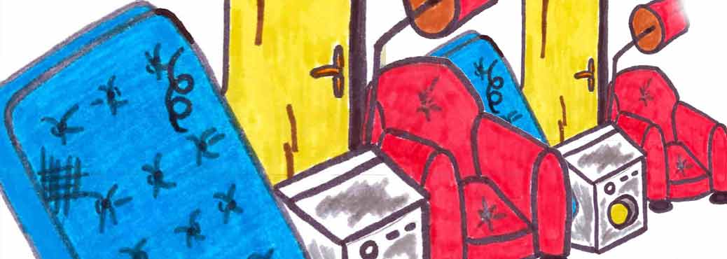 Tables, chaises, meubles ou tout objet encombrant utilisé dans une maison (max. 2 m de long et d’un volume inférieur à 1.5 m3, pouvant être soulevés et chargés par 2 personnes), bois fagoté en petites quantités (0.5 M3 max)