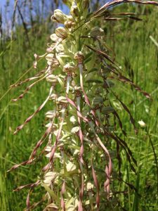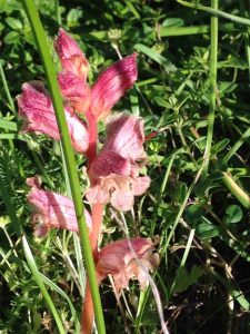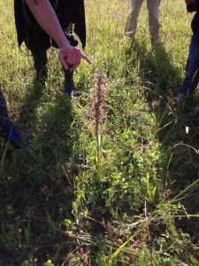 Pour finir la balade, la découverte des orchidées a plongé tout le monde dans l’étonnement. Rien n’est simple pour cette plante. Sa fleur possède un pétale particulier appelé labelle. De forme allongée, il permet l’atterrissage des insectes pollinisateurs et ses couleurs sont bien souvent destinées à leurrer ceux-ci. C’est le cas des Ophrys au labelle brun et poilu, par exemple. D’autre part, leurs graines n’ont pas de réserves et doivent s’associer pour germer à un champignon présent dans le sol. Les bulbes des Orchis sont eux aussi associés à des champignons pour assurer la floraison suivante. Du « donnant-donnant », pas toujours bien réciproque, paraît-il, et plutôt au détriment des champignons !