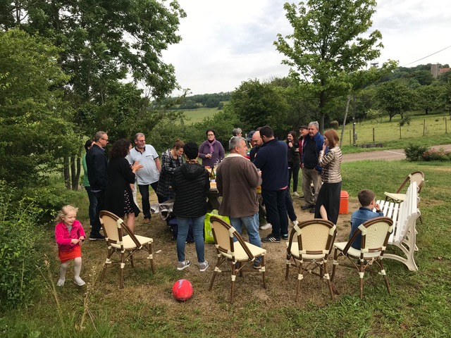 Le temps a fait vraiment des chichis le 7 pour l’apéro aux terrasses Lamontjoie, mais vendredi 14 juin malgré les nuages menaçants, les Amançois étaient au rendez-vous à la Croix de mission, avec de quoi festoyer très sérieusement !Belle tradition du foyer rural que ces rencontres qui rassemblent, à renouveler sans modération !