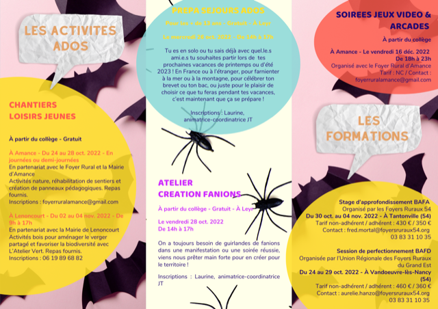À la Une / InformationsAutomne / Hiver 2022 – Jeunesse et Territoire Seille et Grand Couronné Consultez le programme Automne/Hiver de Jeunesse et Territoire