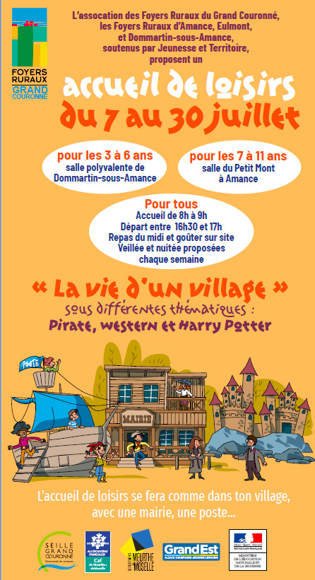 – Pour les 3-6 ans, à Dommartin/Amance, du 07 au 23 juillet, puis à Amance du 26 au 30 juillet.