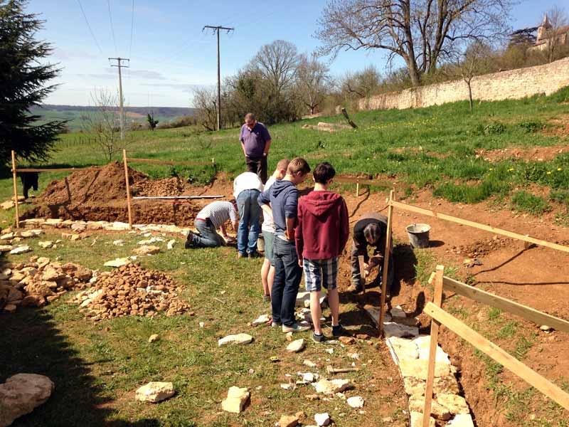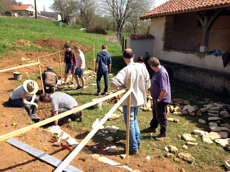 Non, ce n’est pas la composition d’une salade de fruits, ni un constat policier ! C’est ce qu’on pouvait entendre au lavoir, pendant 5 jours du 13 au 17 avril, entre les coups de massette des jeunes et des adultes qui ont construit le premier gradin de l’amphithéâtre.