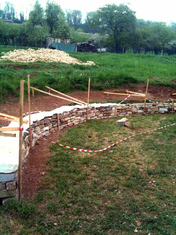 Florence et quelques « intermittents » de découvrir les principes de base de la construction d’un mur en pierres sèches, sous la conduite pédagogique d’Alain Bienaimé, qui sait si bien transmettre sa passion.