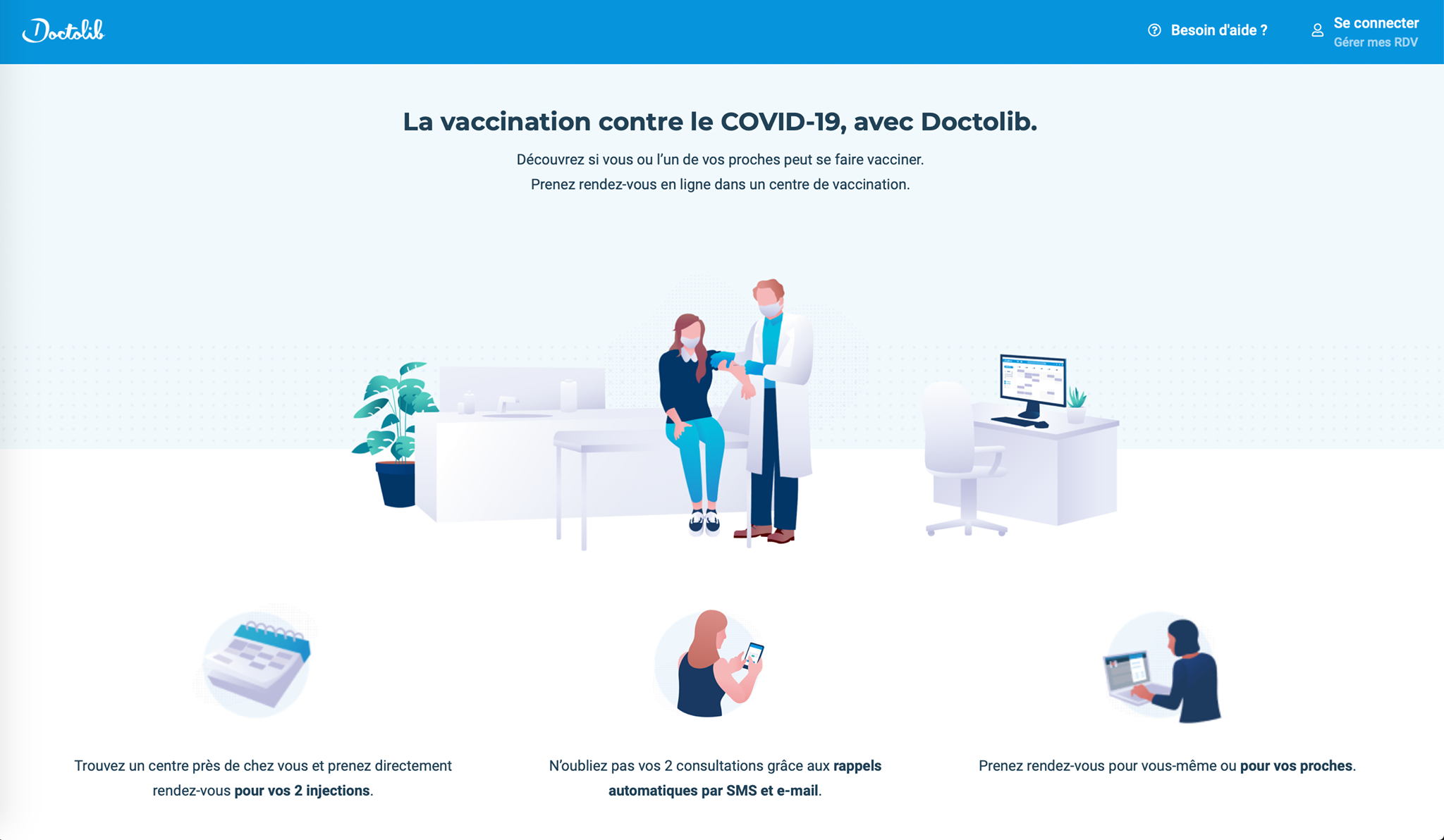 - Les habitants peuvent prendre rdv par eux-mêmes ou pour leurs proches avec le service en ligne DOCTOLIB. Lien direct : https://www.doctolib.fr/