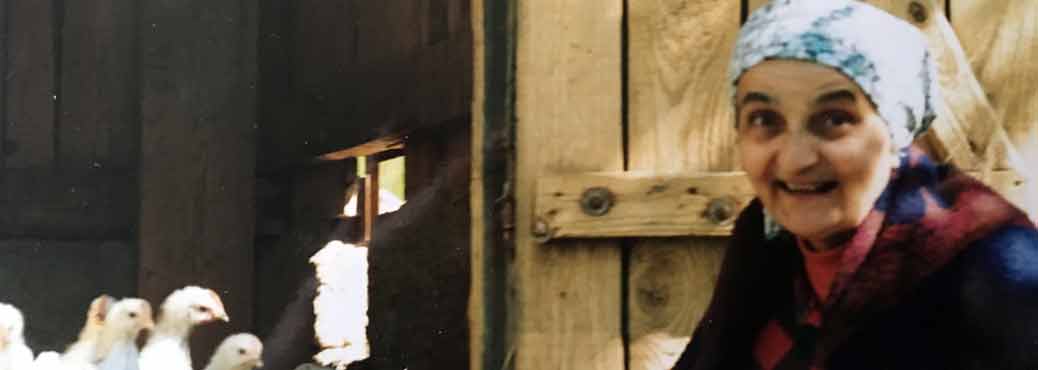 Nous célébrerons son courage d’avoir connu la guerre, d’avoir traversé l’Italie et la Lorraine pour venir ici, d’avoir travaillé d’arrache-pied pour ses plantes et ses poussins bien-aimés, son véritable bonheur trouvé, ses racines qui ont trouvé leur terre en France et amené l’eau à la ferme de Fleurfontaine aux côtés de ses tous adorés propriétaires, de ses edelweiss, fraisiers, pensées et trèfles à quatre feuilles… qu’elle aimait tant offrir!