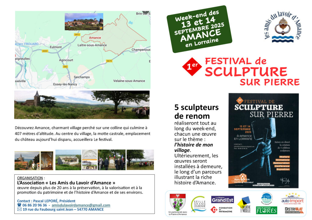 Samedi 13 et dimanche 14 septembre 2025, l’association « Amis du Lavoir d’Amance » organise le premier festival de sculpture sur pierre d’Amance.