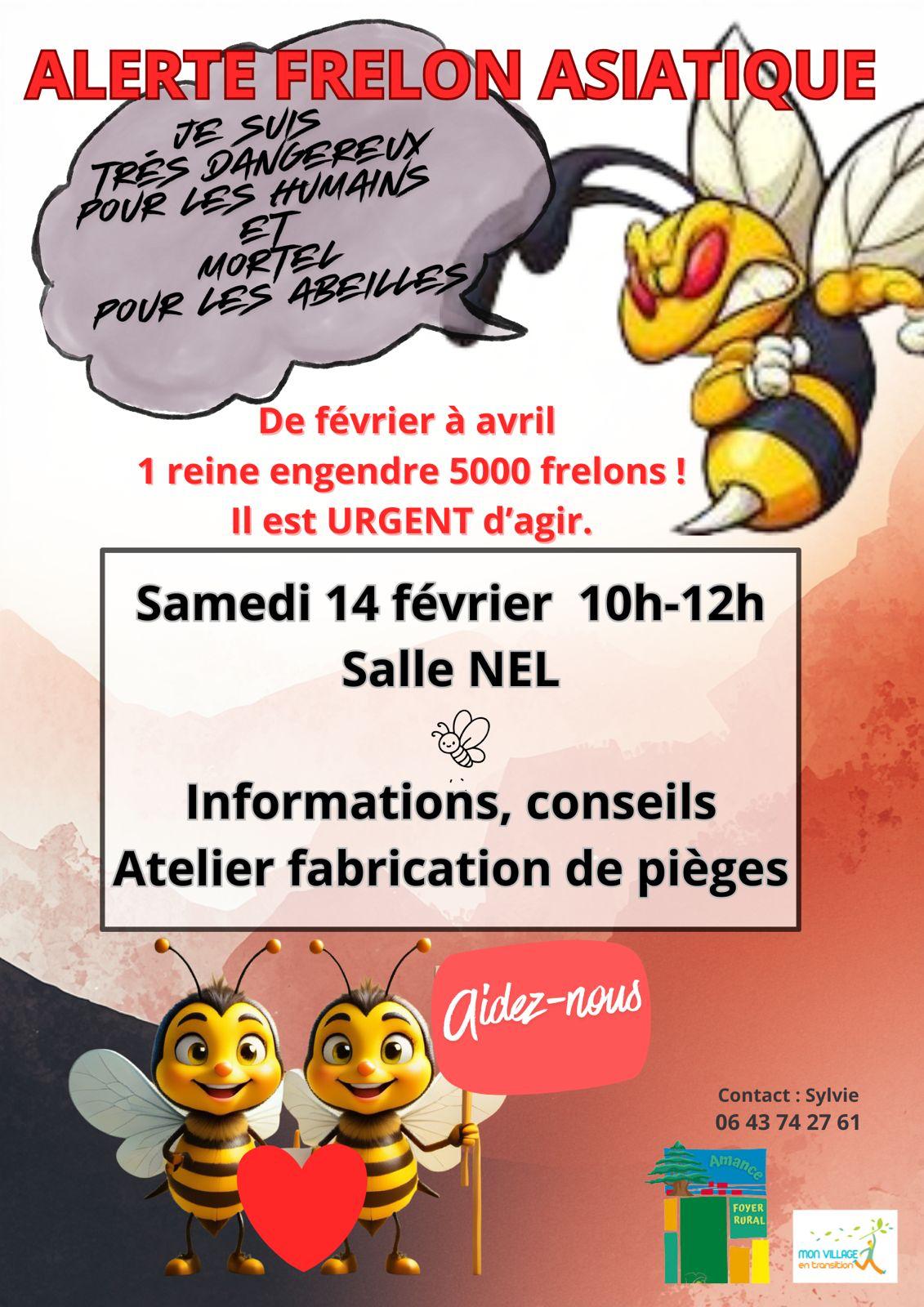 Informations, conseils, et atelier de fabrication de pièges, samedi 14 février de 10 h à 12 h, salle Nel.