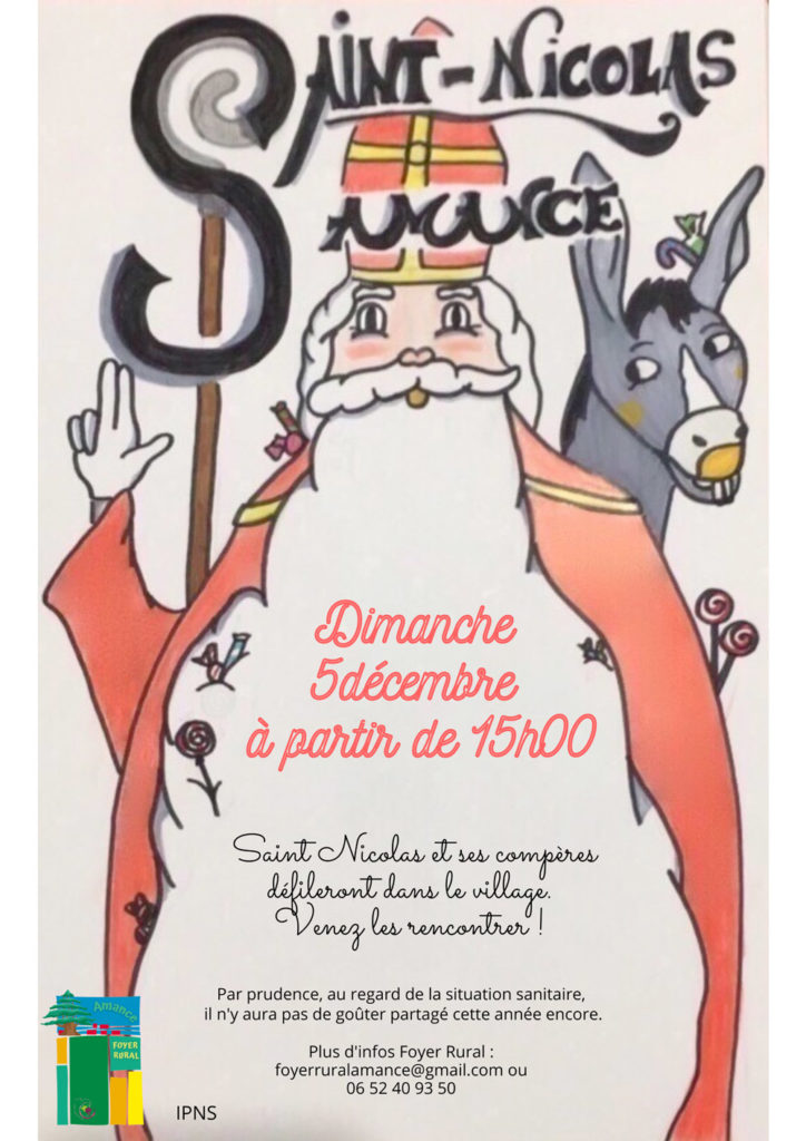 Cette année, Saint Nicolas rendra visite aux enfants d’Amance le samedi 5 décembre à partir de 15h.