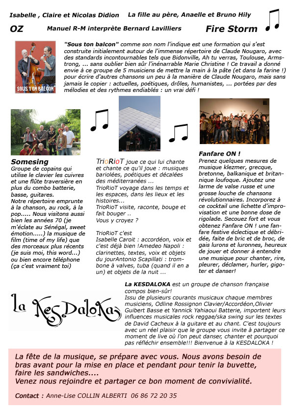 Une édition très réussie de la fête de la musique et de la fête du village. Musiciens excellents, public très enthousiaste et météo agréable étaient au rendez-vous pour une soirée toujours aussi magique. La fête patronale a prolongé les réjouissances le dimanche, en rassemblant les Amançois et leurs amis autour de l’apéritif municipal.