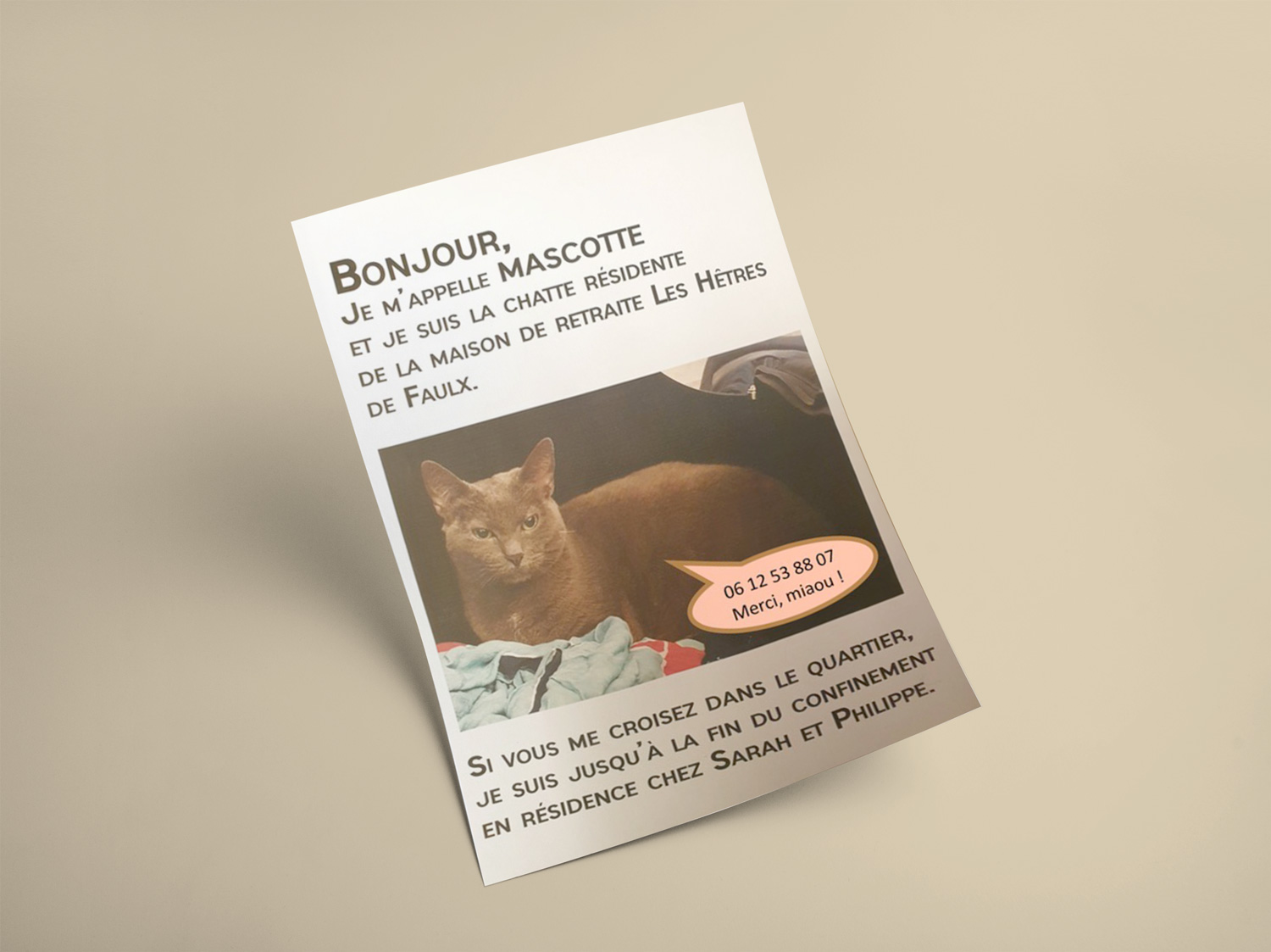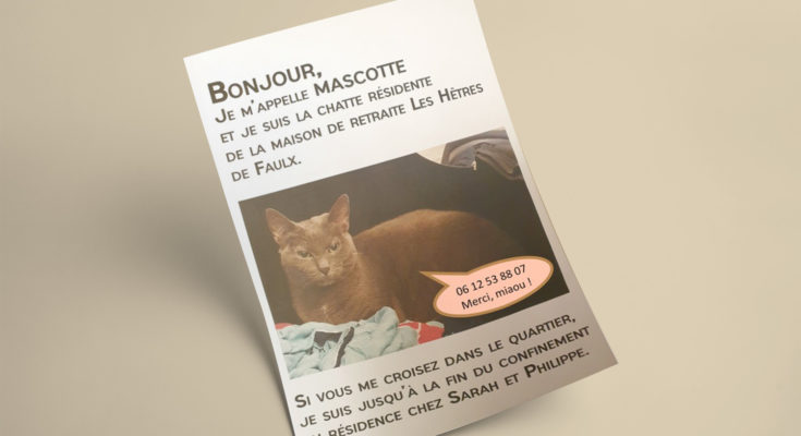 Ce chat n’est pas perdu, mais il est actuellement en résidence provisoire chez Sarah et Philippe, et pourrait facilement s’égarer !