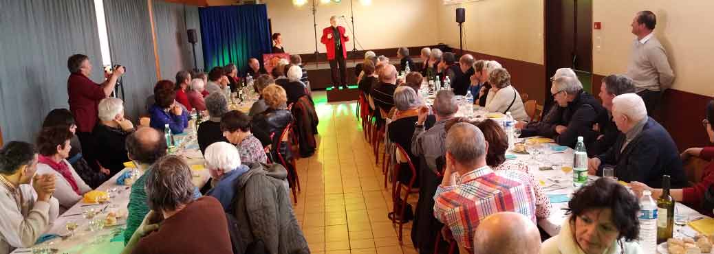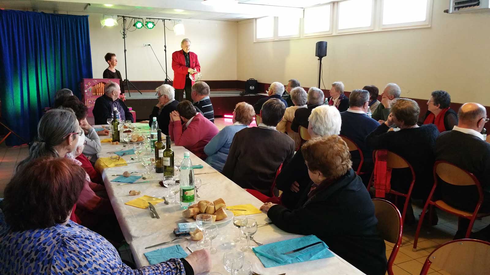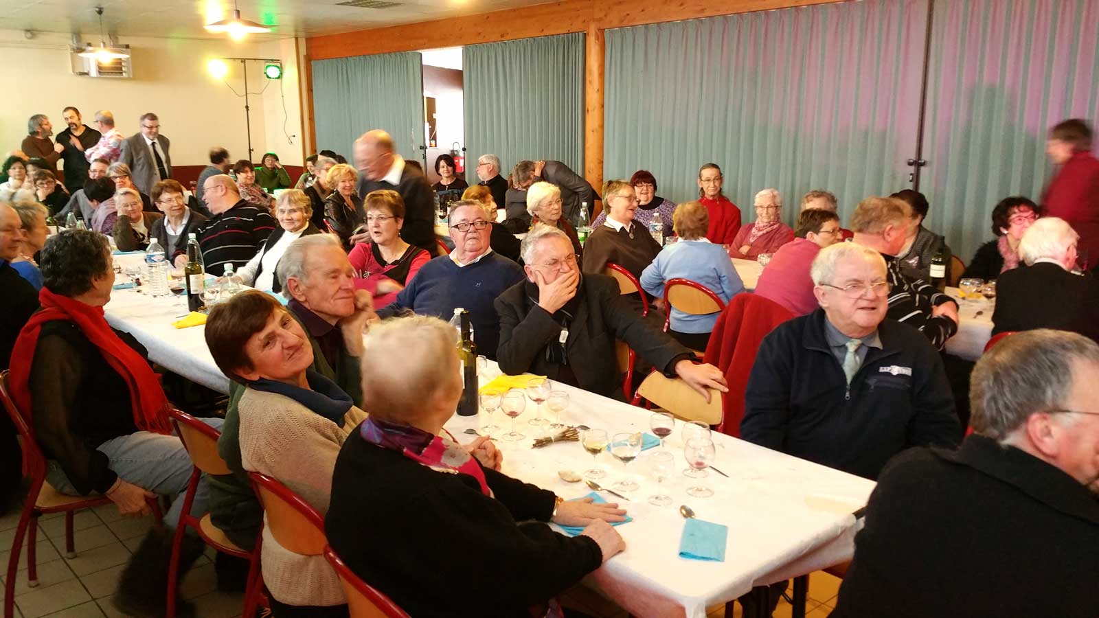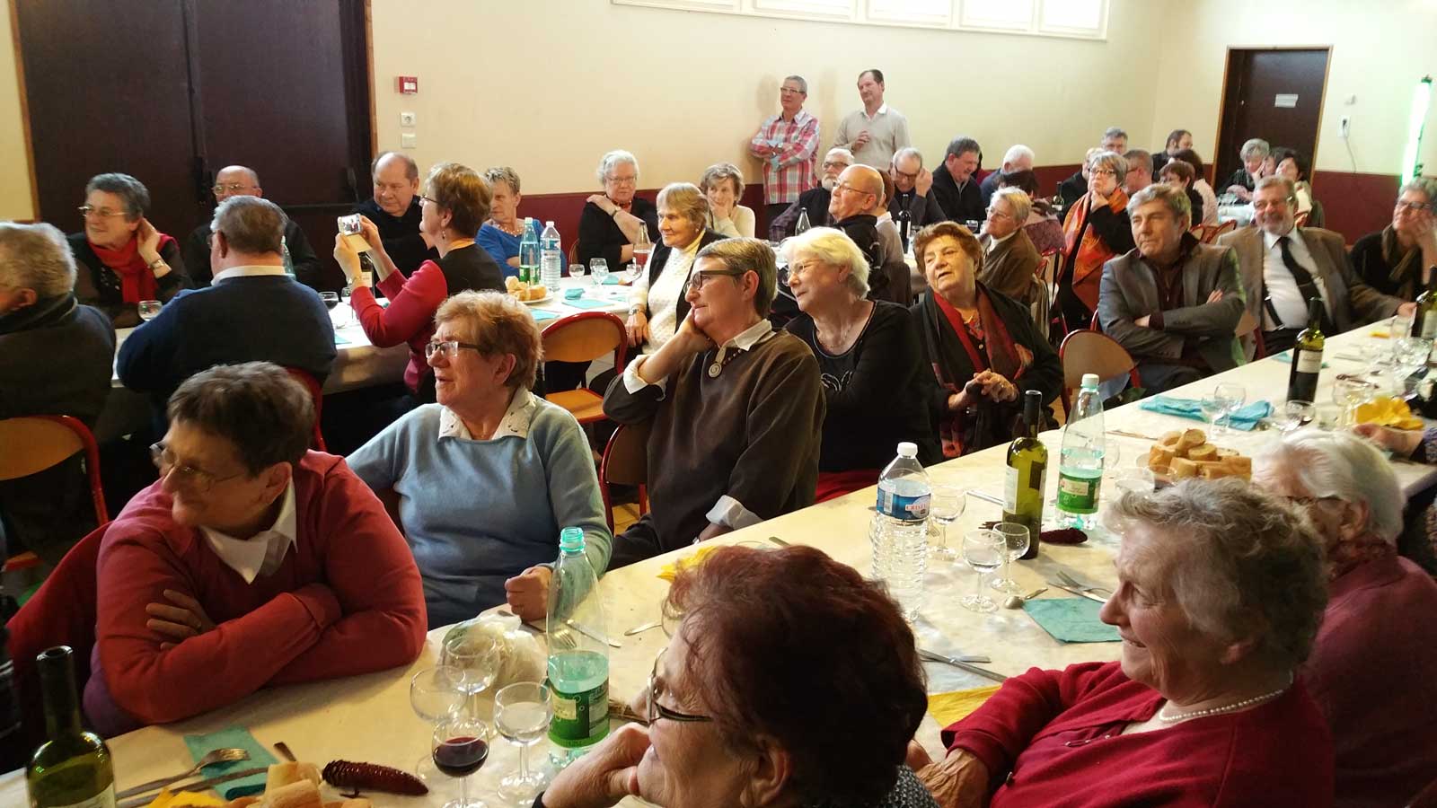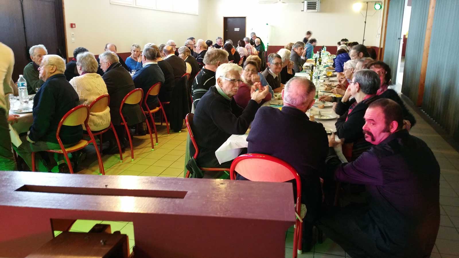 Sous la neige, nos aînés de plus de 61 ans et leurs conjoints, ainsi que quelques autres participants (le festin est ouvert à tous) ont participé au repas annuel organisé par le CCAS d’Amance.