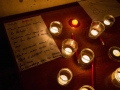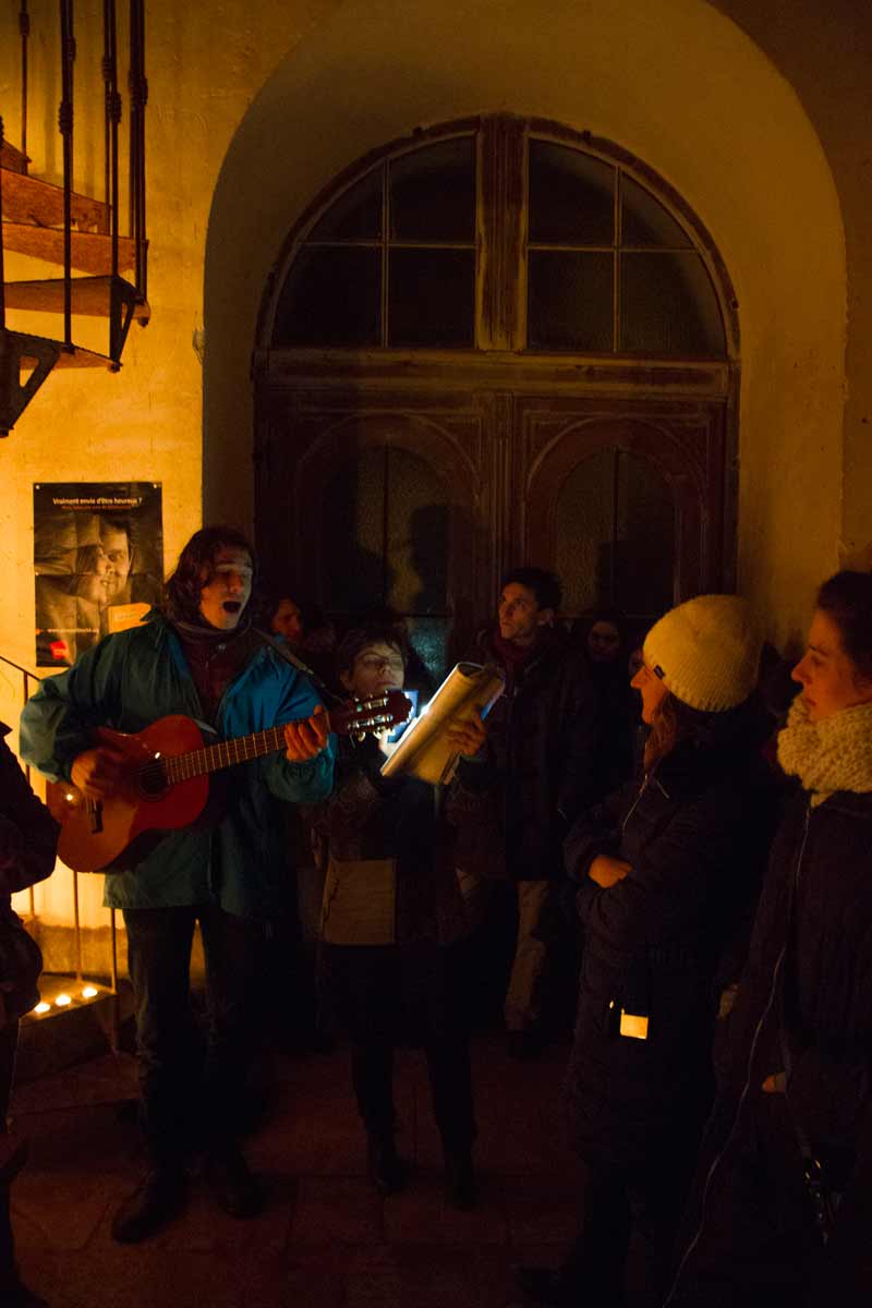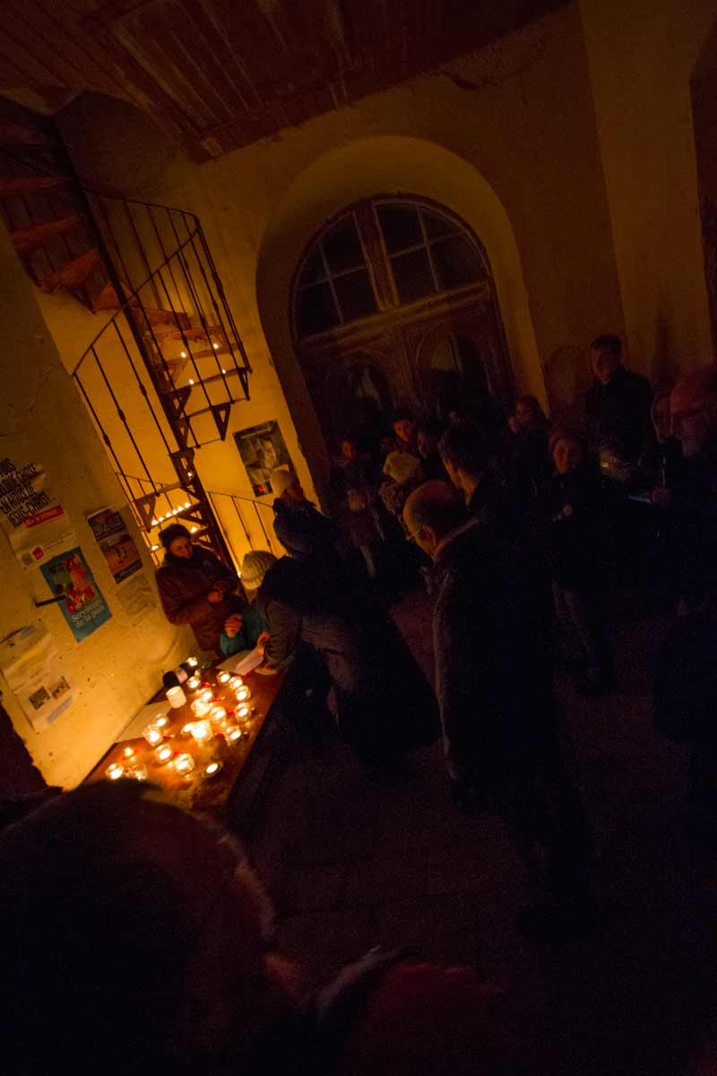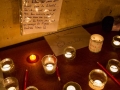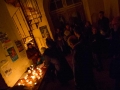 Les conditions météo ne permettant pas de le faire à l’extérieur, les nombreuses bougies ont été installées sous le porche de l’église.