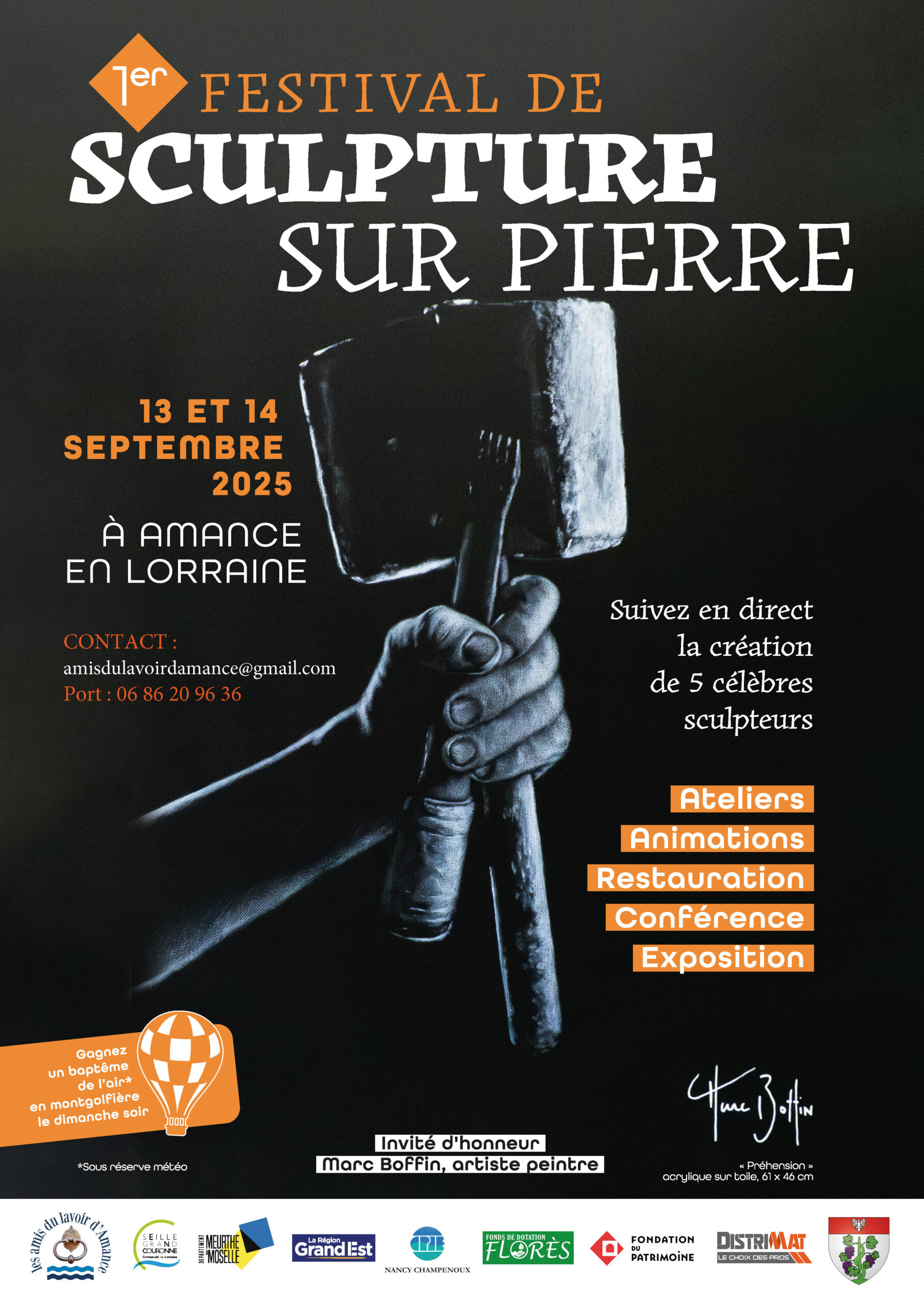 Samedi 13 et dimanche 14 septembre 2025, l’association « Amis du Lavoir d’Amance » organise le premier festival de sculpture sur pierre d’Amance.