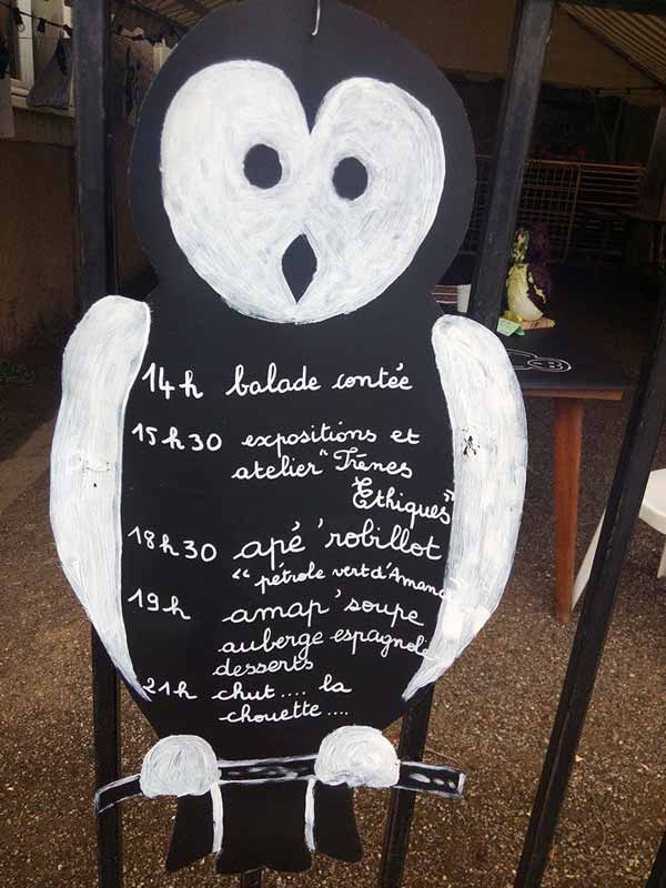La manifestation a commencé en début d’après-midi par une balade contée depuis le centre du village jusqu’au lavoir, puis des animations se sont déroulée autour des chemins et des haies. En fin d’après-midi, un apéritif et d’autres bonnes choses à déguster ont été proposés, avant d’observer la chouette vers 20 heures depuis la butte du château (il parait que certains l’ont vue !).