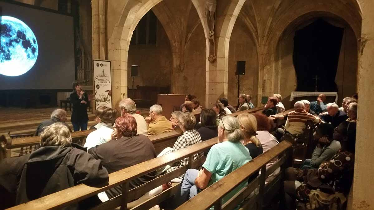 La Lune et le public étaient bien au rendez-vous, le 26 août dans l’église d’Amance, pour la projection du film « de la Terre à le Lune », dans le cadre du partenariat maintenant rituel entre les Amis du Lavoir (Amanciel) et le Festival du film de chercheur…