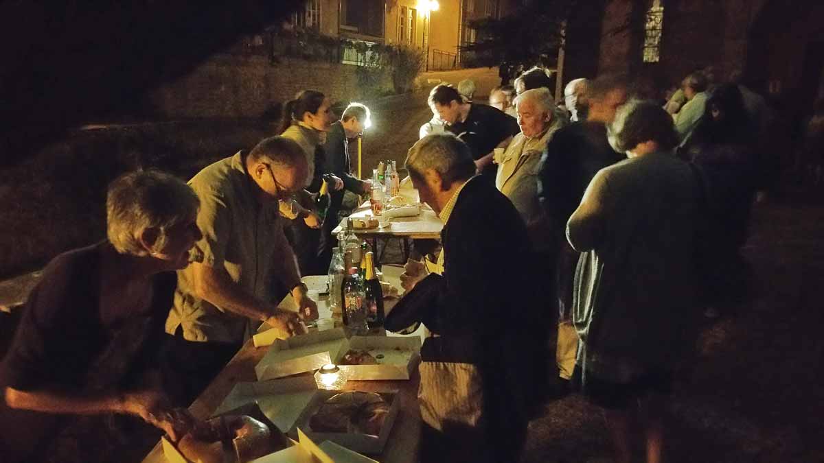 La Lune, qui avait eu le bon goût de se positionner exactement dans une portion de ciel bien visible depuis la terrasse devant l’église, s’est laissé observer aux jumelles malgré un léger voile de nuages …
