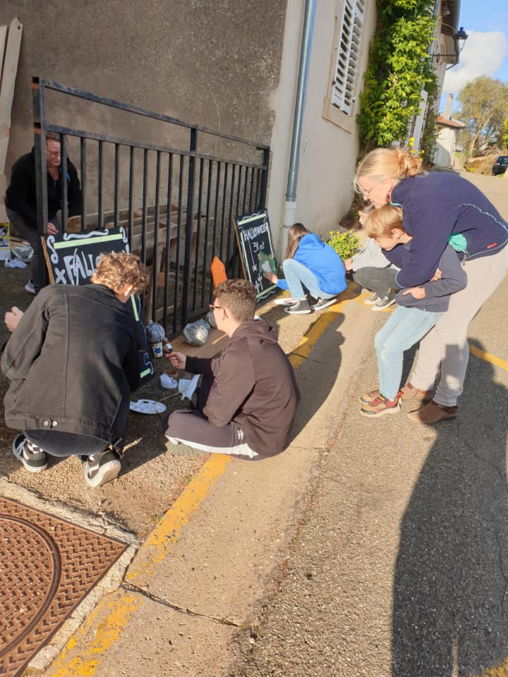 Samedi 23 octobre, bénévoles et jeunes du village ont mis la main à la pâte pour décorer le village.