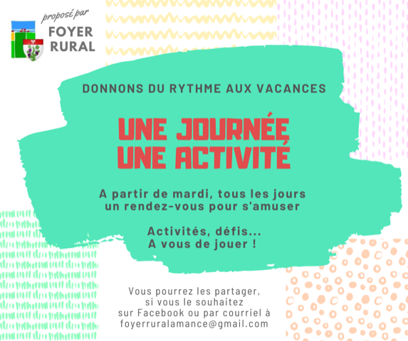 Nos défis seront diffusés sur la page Facebook du Foyer Rural.