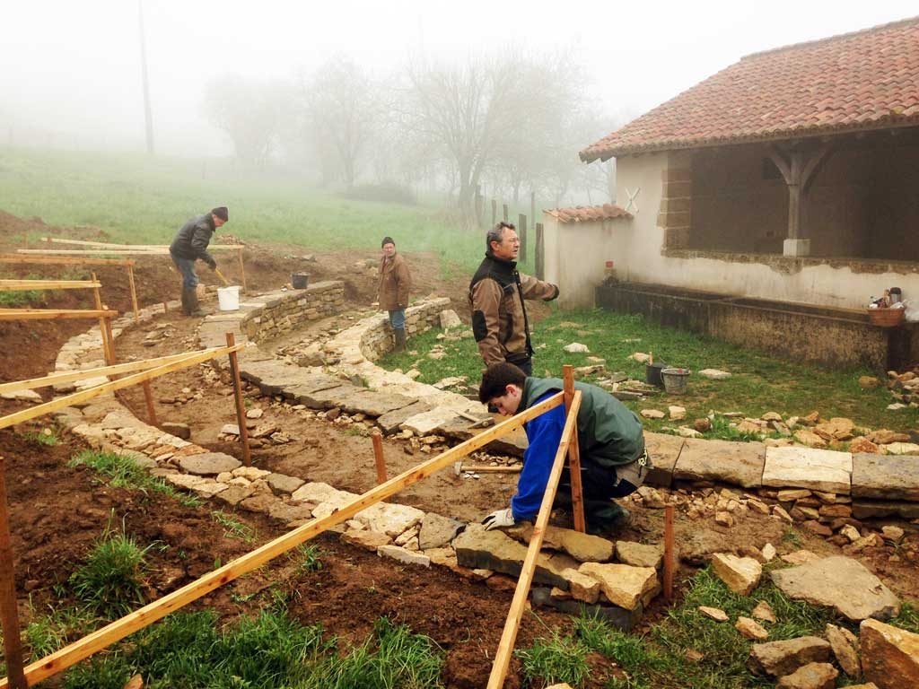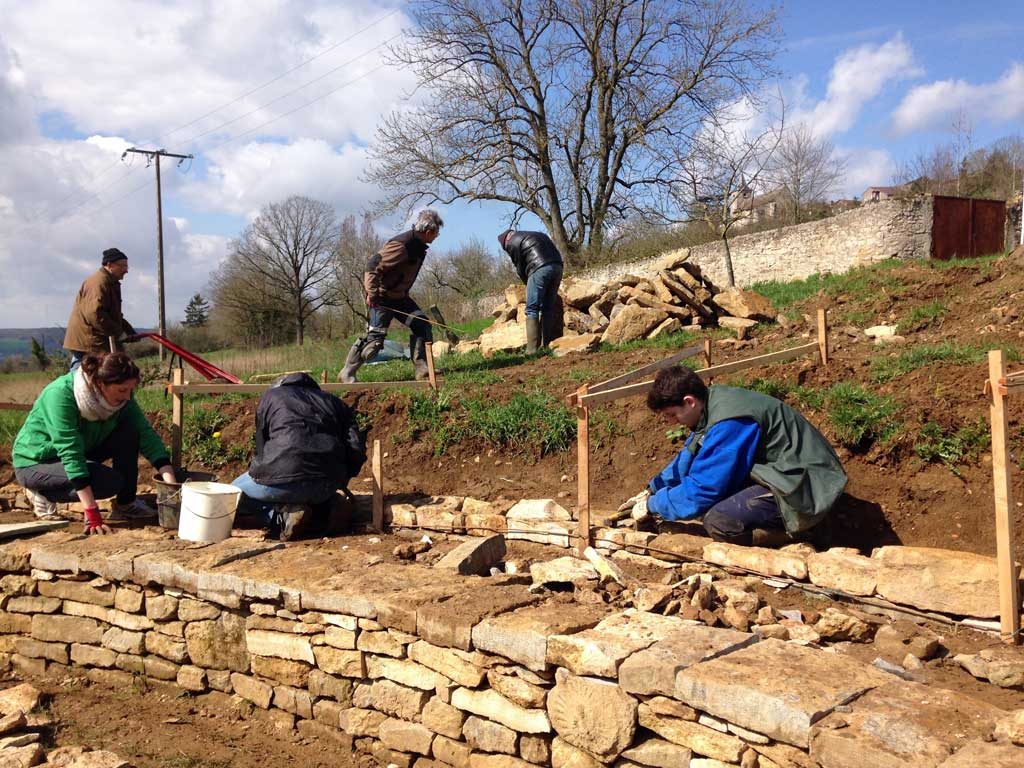 Fin mars, une opération de terrassement rondement menée a permis de préparer les emplacements du troisième gradin. Début avril, les tailleurs de pierres ont ensuite pris possession des lieux et les coups de marteau ont fait concurrence aux chants d’oiseaux. Quelques séances sont encore programmées en avril afin d’accueillir le public pour un premier spectacle le 5 juin.